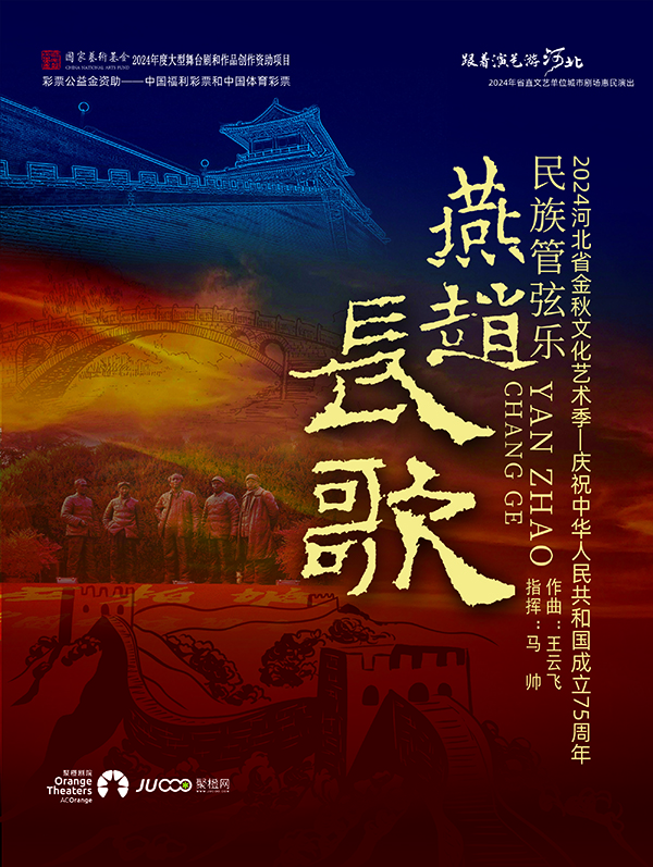 国家艺术基金2024年度大型舞台剧和作品创作资助项目——民族管弦乐《燕赵长歌》践行文旅融合发展理念,立足弘扬传承中华优秀传统文化,挖掘河北丰厚历史文化资源、深厚人文故事积淀,以燕赵文化、长城文化、红色文化、时代精神、优美自然生态环境为创作基础,突出音乐的抽象叙事功能,以民族器乐为表现主体,深情描摹河北这片丰厚而风雅、雄浑而灵秀的土地,展现历史的河北、地理的河北、红色的河北、火热的河北、未来的河北,彰显出在大河之北,燕赵儿女古今一脉“仁厚、义气、质朴、慷慨”的动人情怀,诠释民族自信、文化自信。