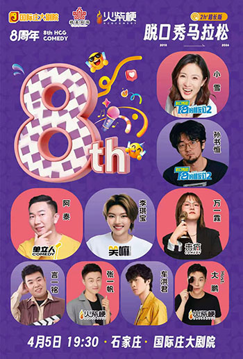 《火柴梗8周年喜剧马拉松》是火柴梗喜剧8周年的纪念演出,在河北石家庄从事喜剧事业8年了,给石家庄观众带来一场喜剧盛宴,主打看个够!演出总时长2小时起步,演出阵容也邀请了综艺节目《脱口秀和Ta的朋友们》的明星孙书恒和小雪,以及单立人喜剧的阿泰,笑嘛喜剧的李琪宝,来疯喜剧的万一霖,复旦大学的车洪君,东北演员言一铭以及火柴梗签约演员张一帆。主持人是火柴梗创始人大鹏。